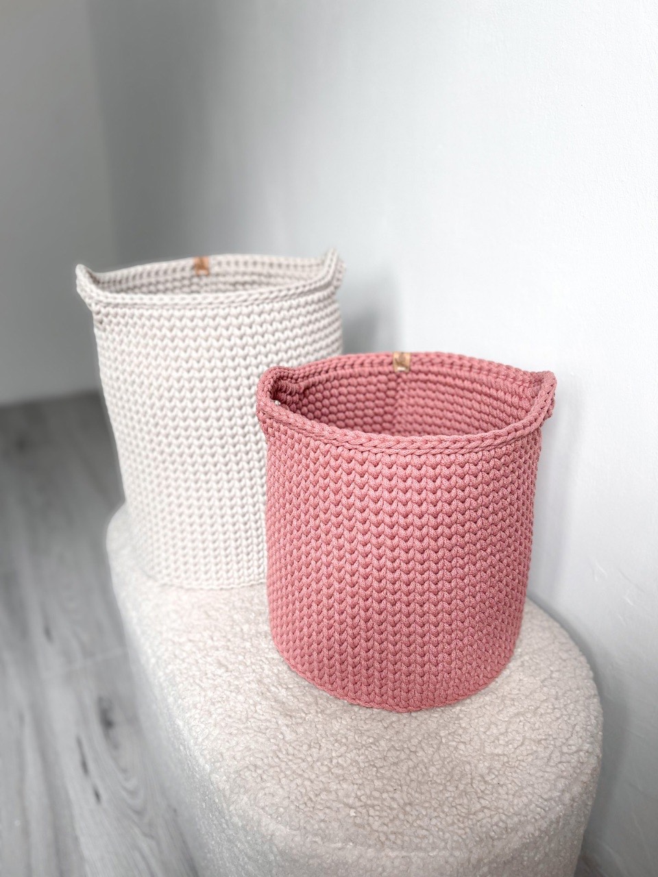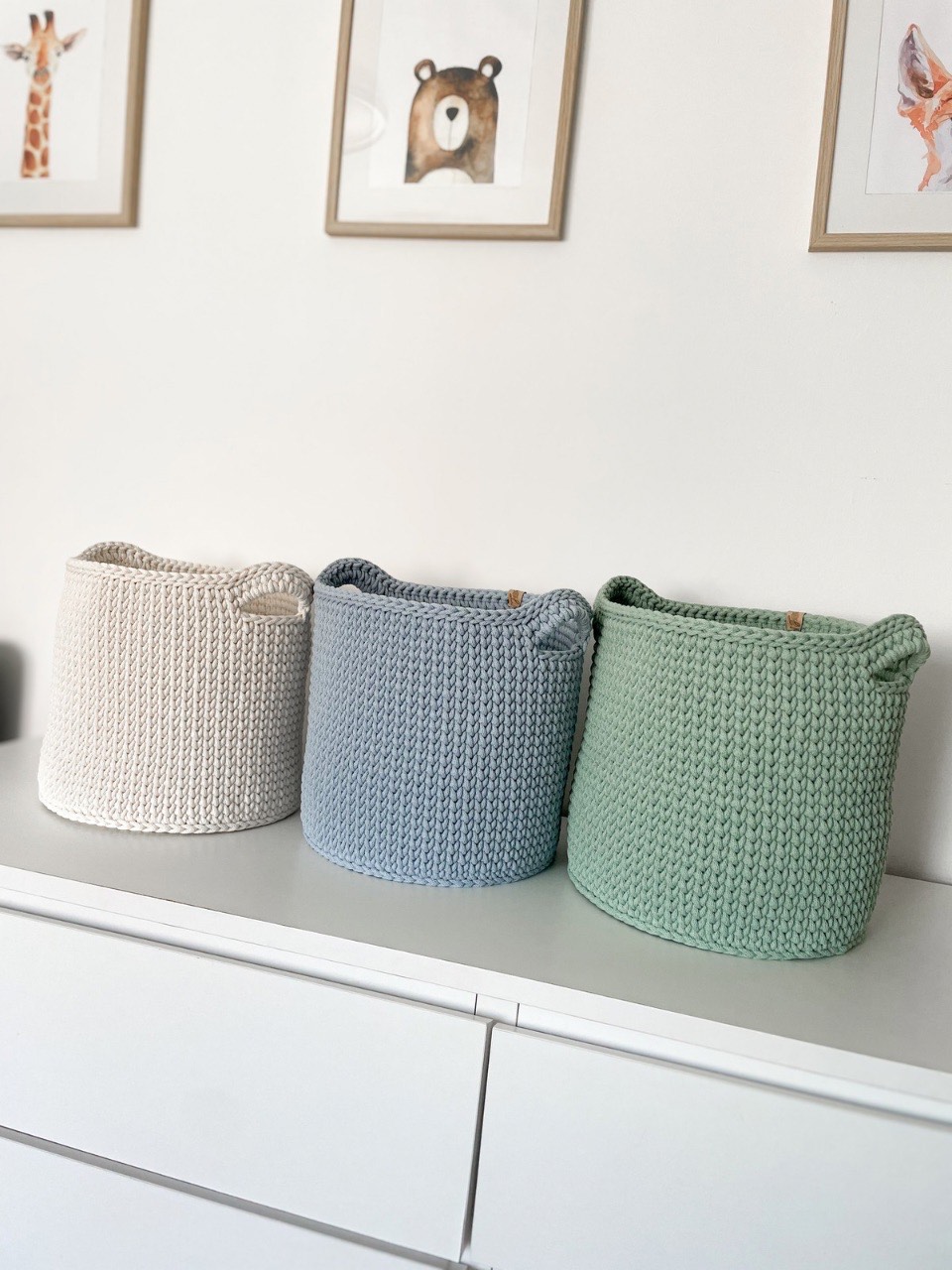 Horgolt egyszínű tároló kosarak