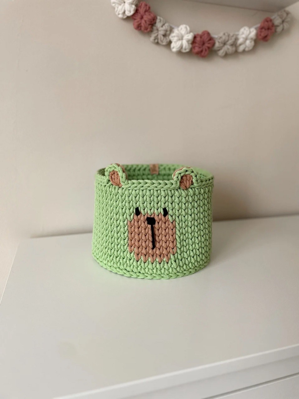 Erről a kis maci kosár kedves arcáról is látszik, hogy szeretettel lett horgolva, így még nagyobb szeretettel fogja díszíteni a kis kuckótokat, nem utolsó sorban elrejti a kincseket mások elől. Tárolhatsz benne a babádnak pelenkázáshoz használt termékeket, de a kisebb autók, játékok is helyet kaphatnak benne.