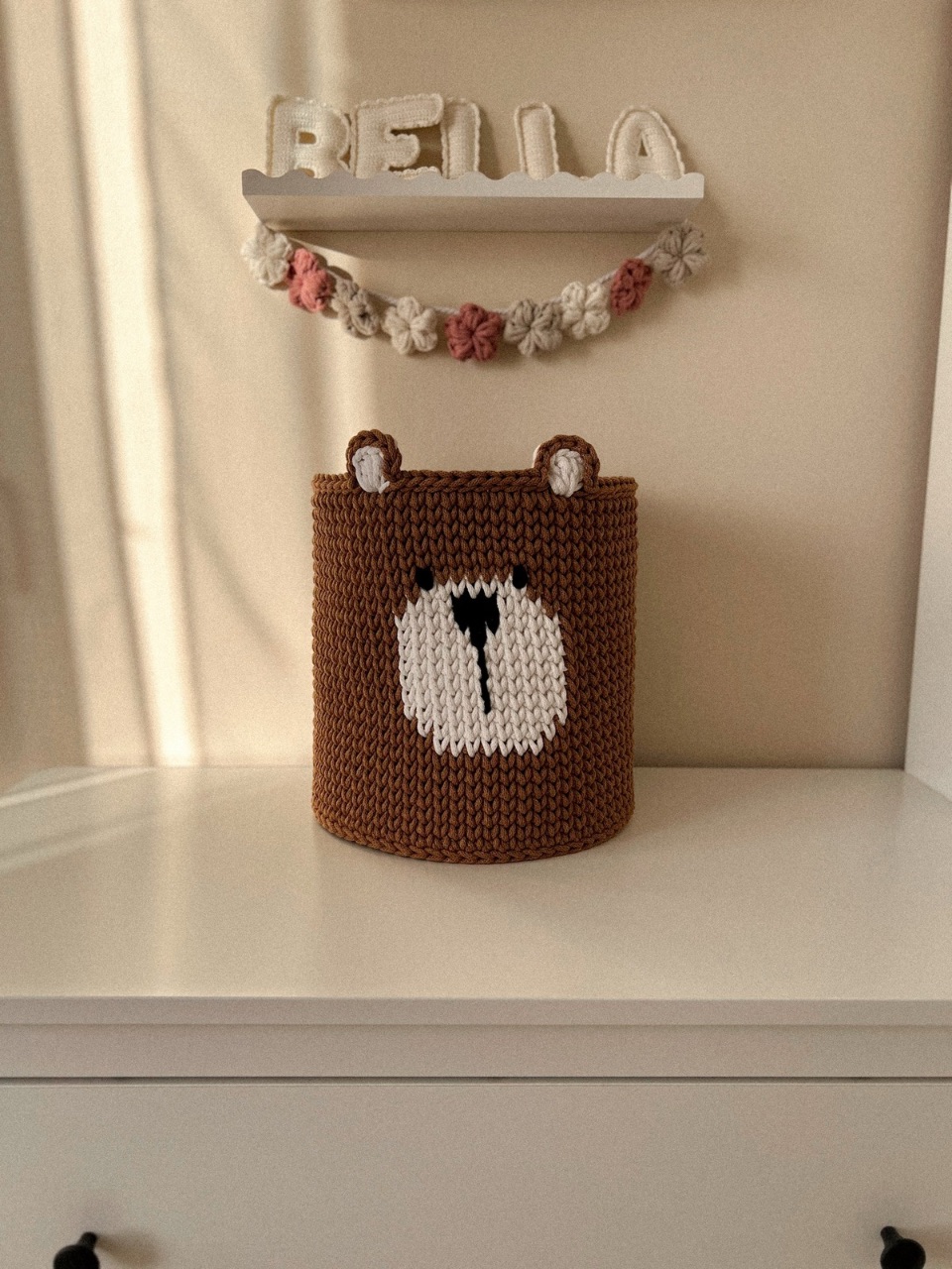 A horgolt tároló 100% prémium újrahasznosított pamut fonal felhasználásával készült, így tartása merev, strapabíró és a legkisebbeknek is bátran választható.