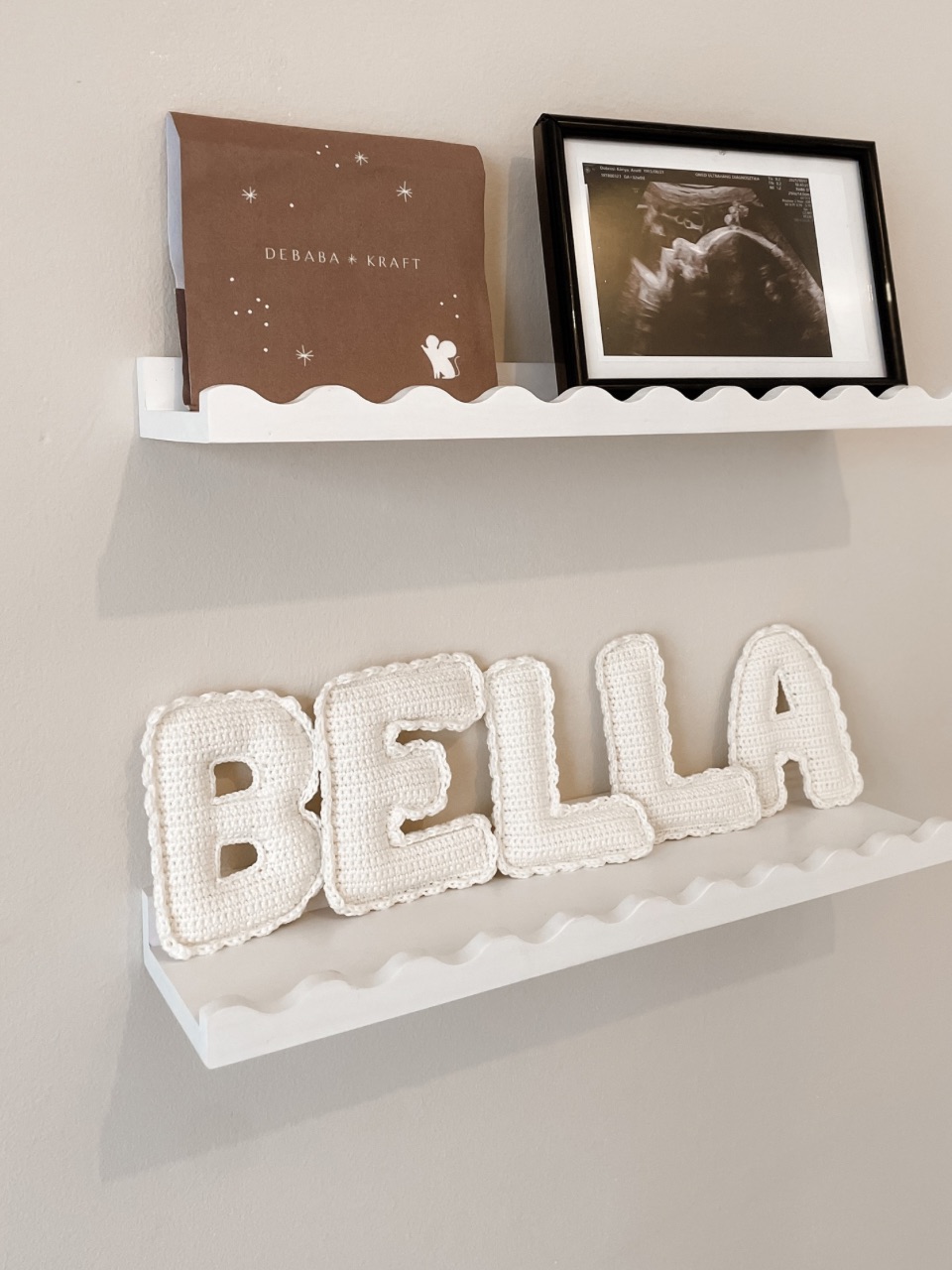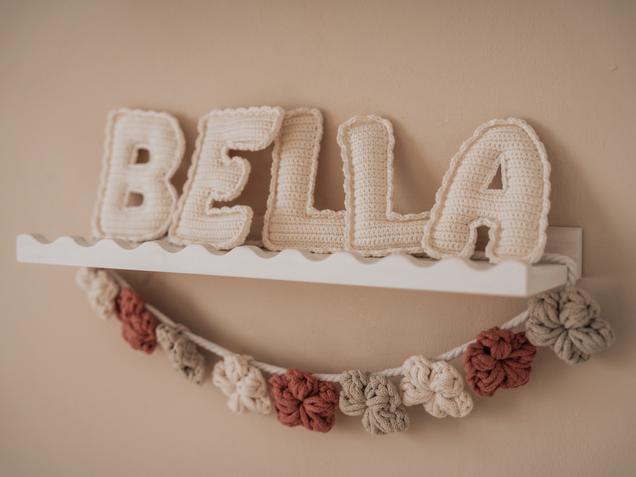 Babaváró buli, keresztelő, vagy babát vársz, és egyedi kiegészítővel szeretnéd feldobni a babaszobát? Válassz pamut fonalból horgolt betűket a baba nevével kirakva, natúr színben! Különlegessége a betűk oldalára horgolt dísz szegély.